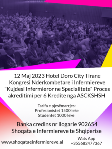 Programi i Kongresit “Kujdesi Infermieror ne Specialitete” 12 Maj 2023 Hotel Doro City Tirane